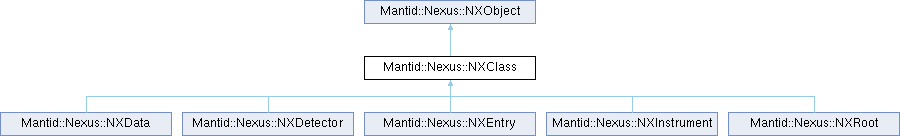Derived classes have specialized methods for creating classes and datasets specific for the particular Nexus class. NXClass is a conctrete C++ class so arbitrary, non-standard Nexus classes (groups) can be created and loaded from Nexus files.